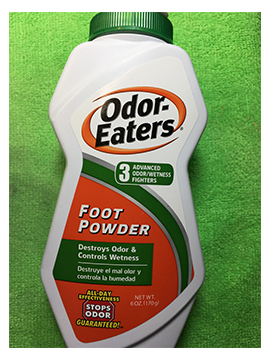 - Sprinkle Odor-Eaters Foot Powder generously on the interior of a hard-shell case.