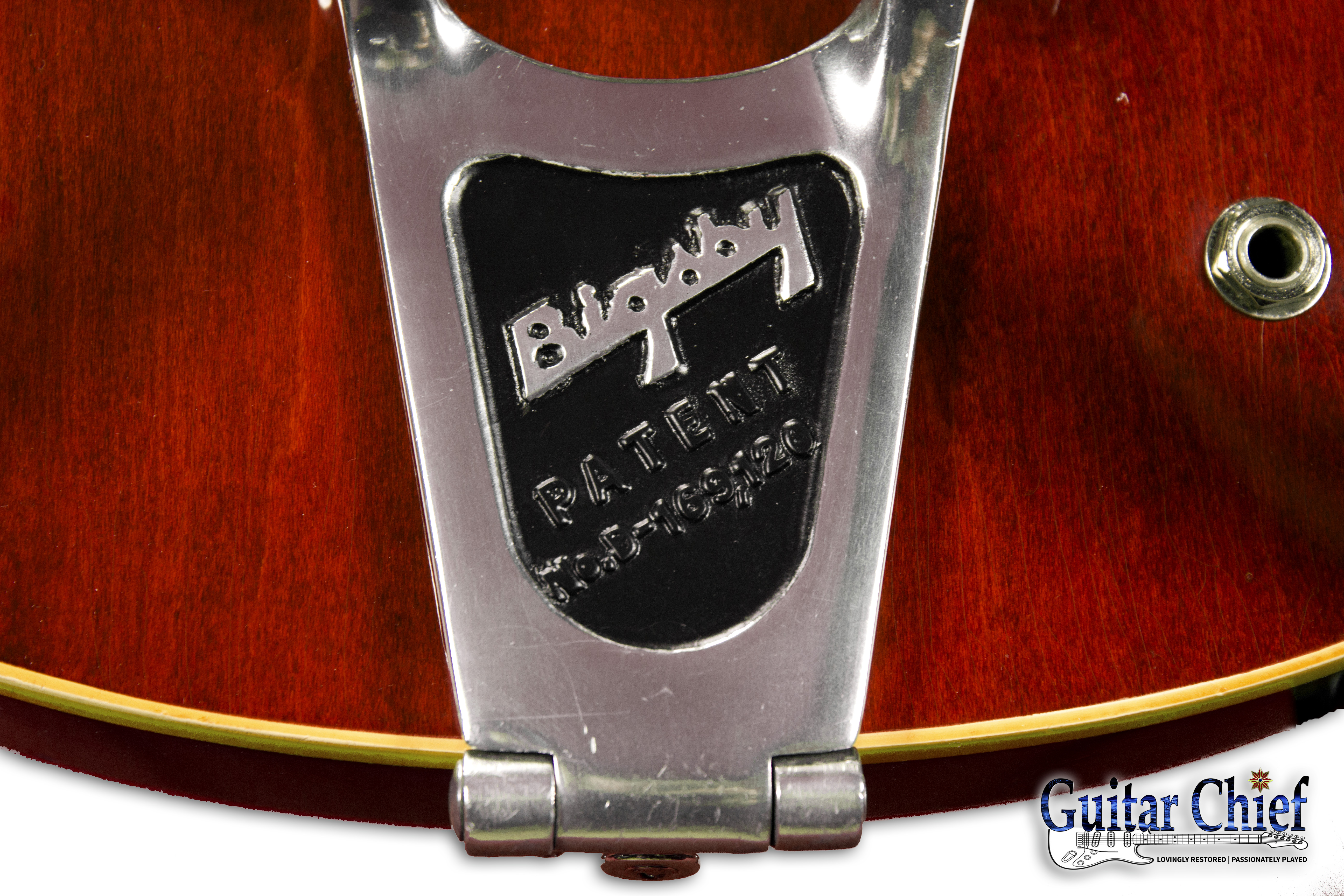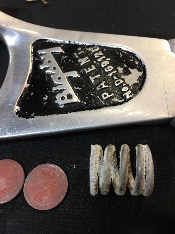 BEFORE: Cruddy tarnished metal; worn Bigsby paint